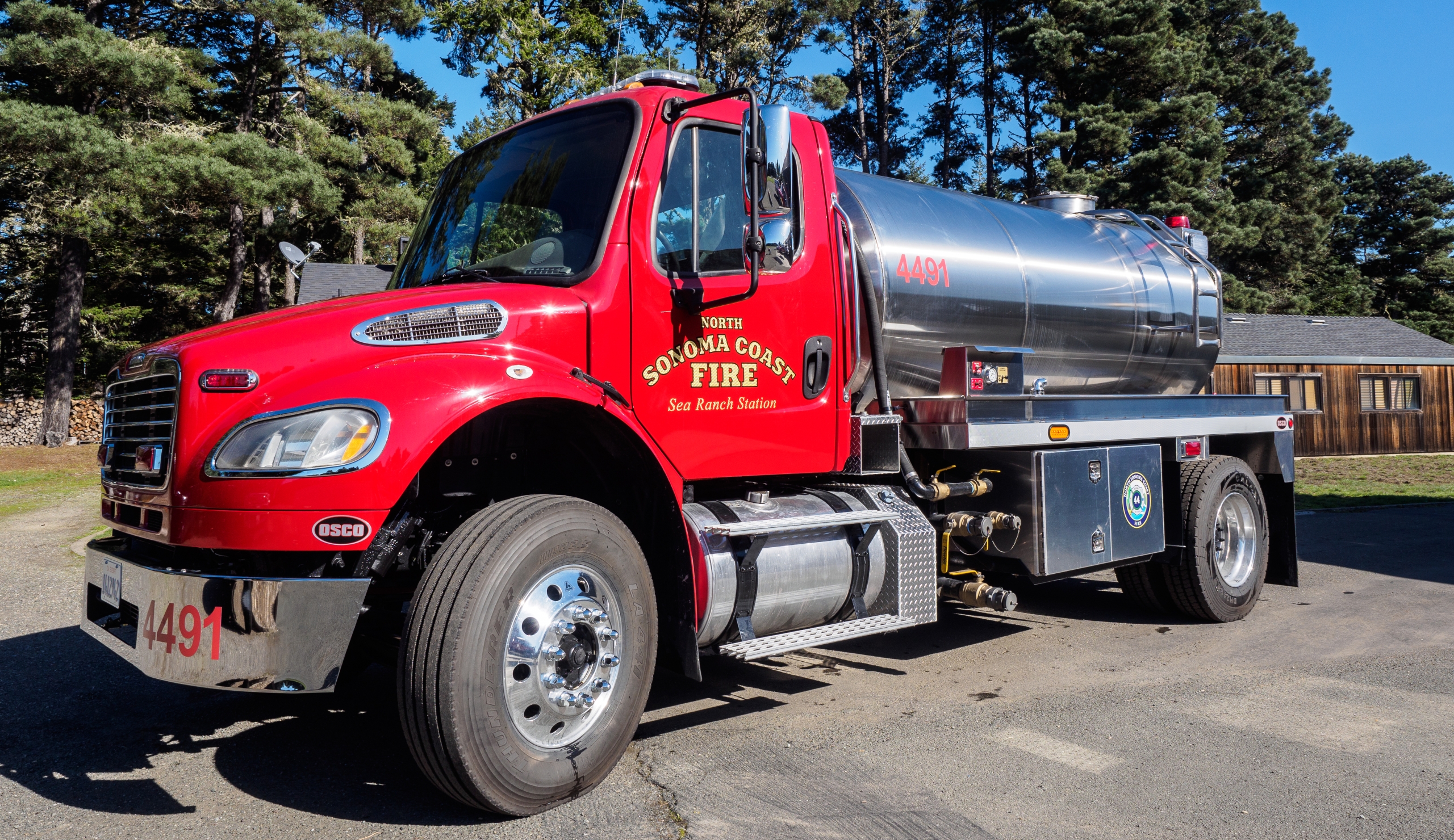 Water Tender 4491 is a 2014 International truck with a new buildup of water tank and pump added in 2021. 4491 carries 2,000 gallons of water.