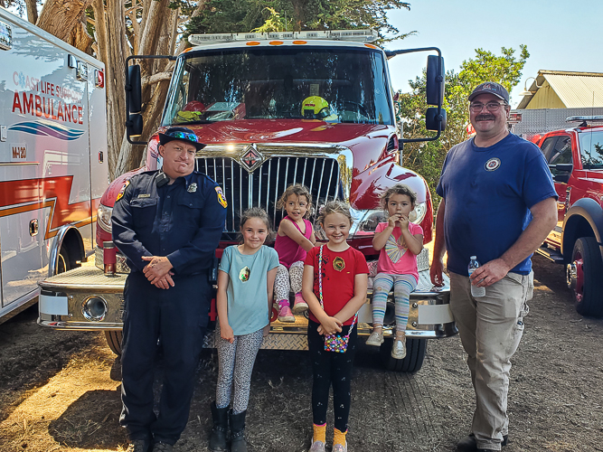 After four years of effort NSC welcomes new Engine 4458 to its fleet as of August 2024! E4458 is a “type 6” engine that has been custom designed for our needs on the coast. E4458 has a Ford F550 chassis and a buildup custom built by Rosenbauer in South Dakota. It can respond to fires, medical aids, rescues, and vehicle accidents. It is four-wheel drive and while not a “small” vehicle it is smaller and more agile than the larger engines used to fight structure fires, and can reach areas in our rural district that the larger engines cannot. E4458 is our “first-out” vehicle, the one that our CAL FIRE staff responds in to most incidents. It replaces aging rescue truck 4432. By replacing a rescue vehicle without firefighting capability with a “type 6” engine, we have increased the departments ability to respond to incidents involving fire.